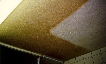 Eine Decke während entsprechender Reinigung (Vorher/Nachher)